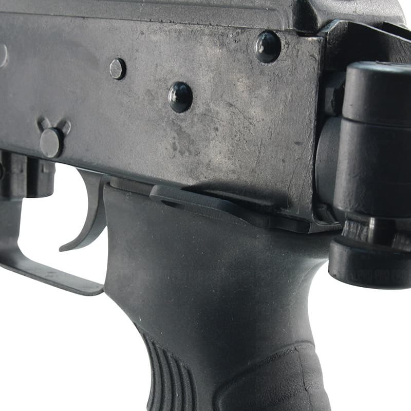 - Фиксируется между пистолетной рукоятью и ствольной коробкой;
