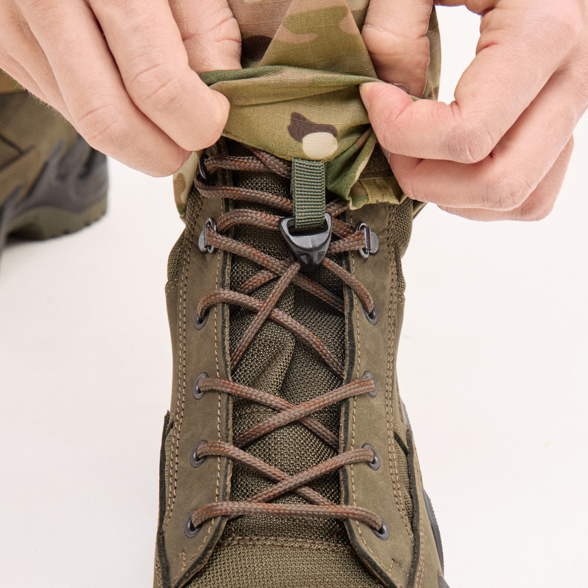 - Штанины регулируются по объему с помощью трех хлястиков на липучке - в районе подколенной ямки, икроножной мышцы и ахилла;