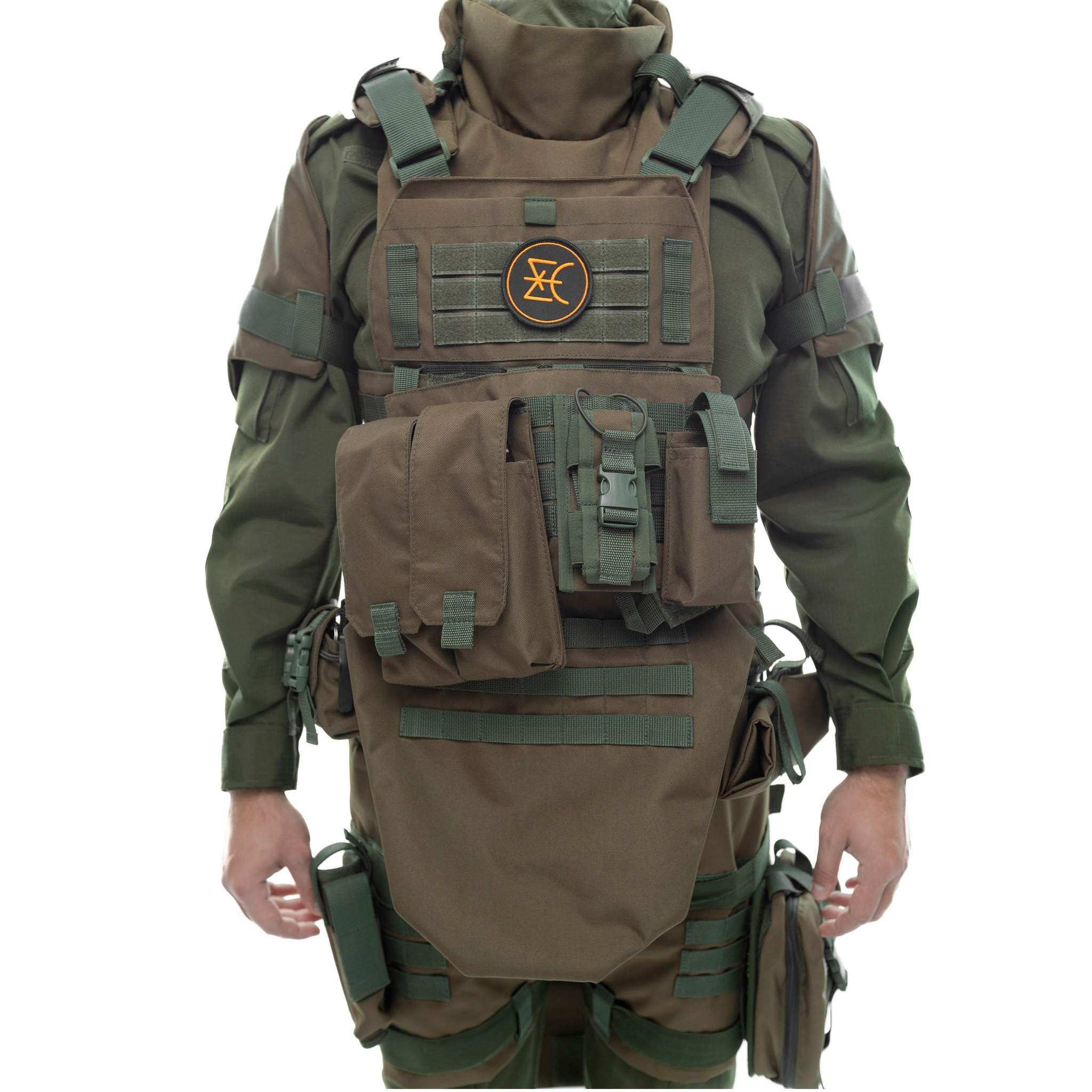 - Устанавливается на фронтальную часть бронежилета, плотно фиксируясь на ней с помощью двусторонних велкро-лямок;