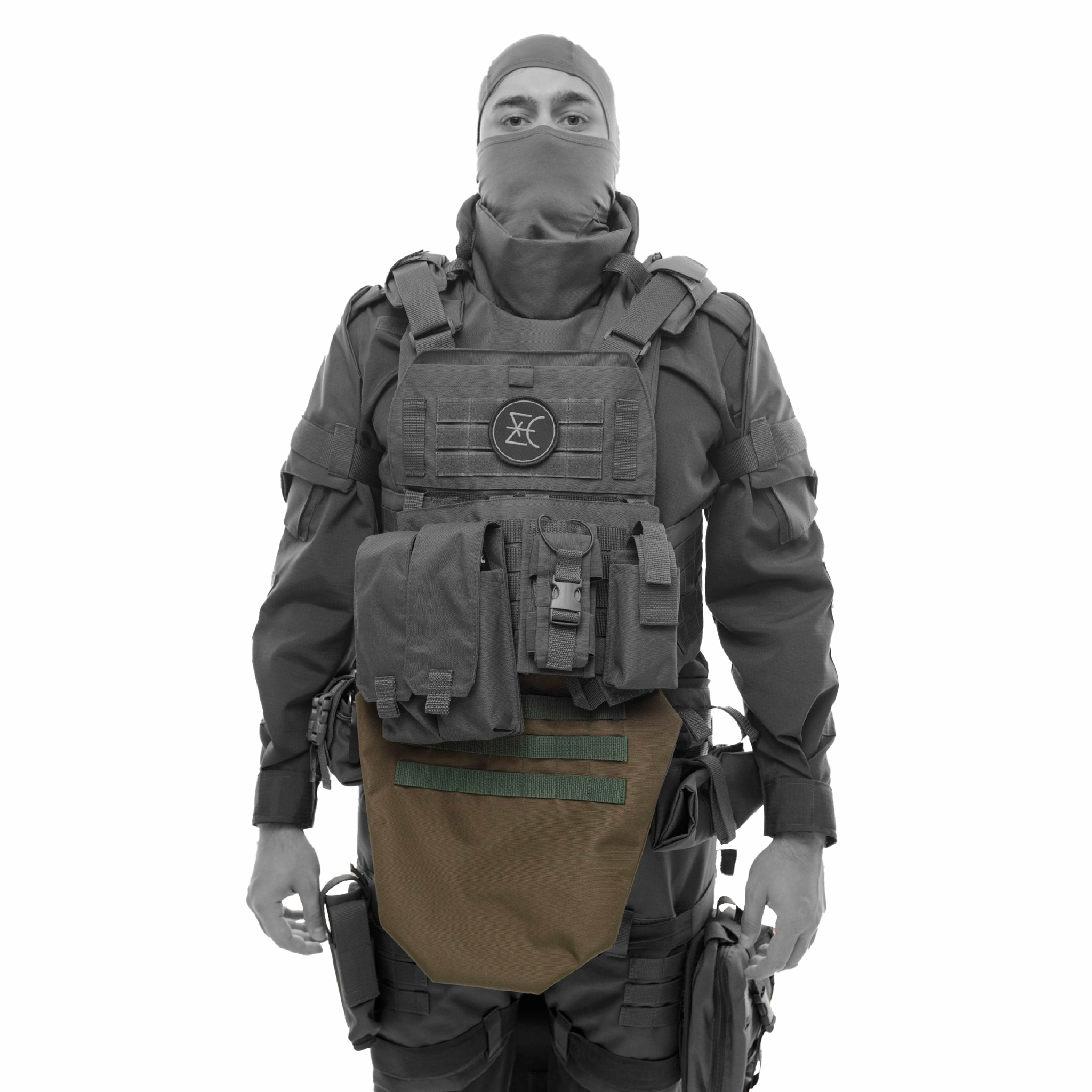 Напашник противоосколочный, Ganza - модульное дополнение к плитнику, чехол предназначен для защиты нижней части живота и области паха от попадания осколков, пистолетных пуль и холодного оружия.