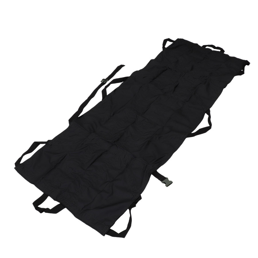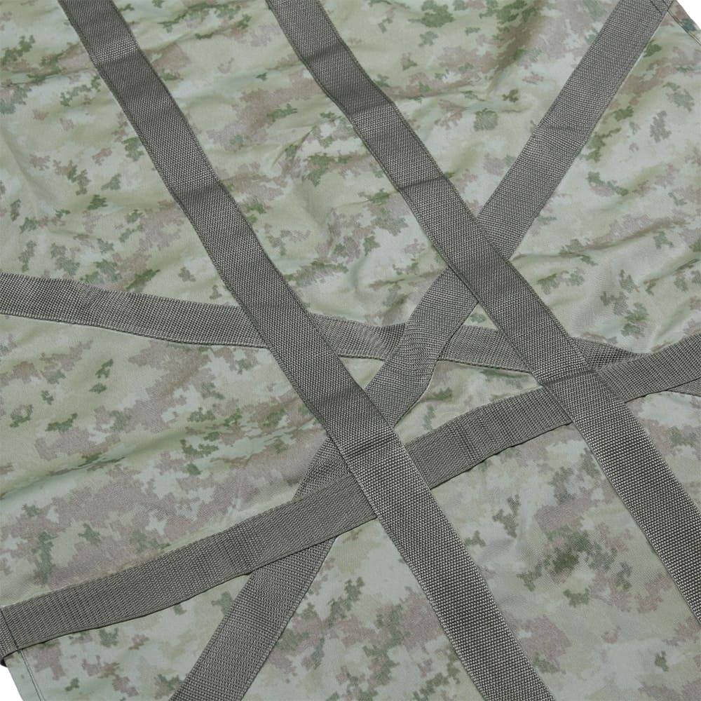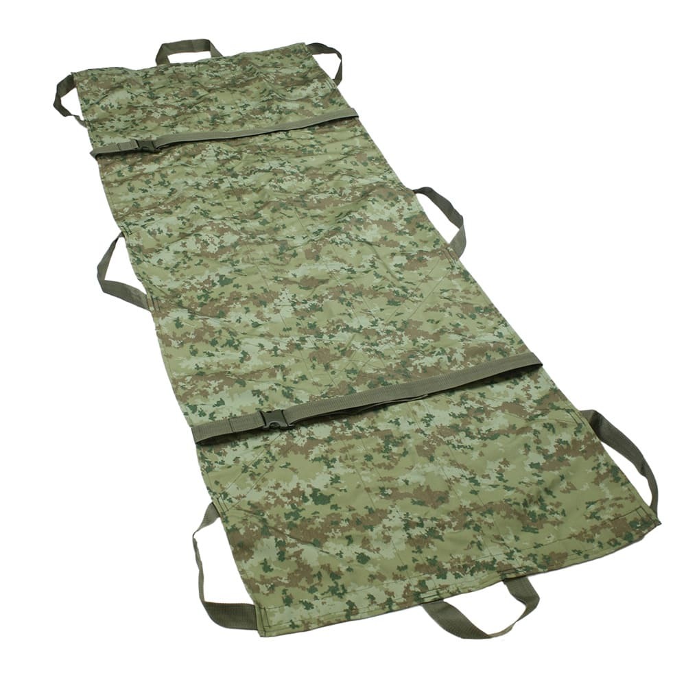 - Носилки бескаркасные прошиты цельной стропой 40 мм, которая формирует 8 ручек для переноски раненого - по 3 по бокам, а также по одной в головной части и в ногах;