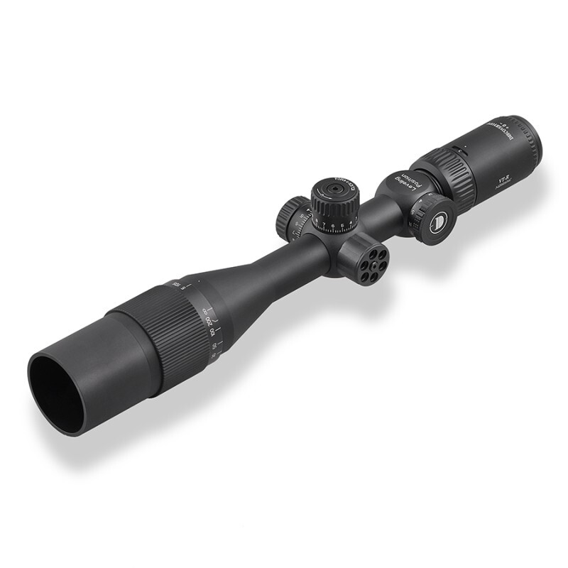 - VT-R 3-12x40SF Discovery оборудован широким диапазоном регулируемой кратности: от 4 до 16х. На малых значениях применим для стрельбы по движущимся или появляющимся целям на коротких и средних дистанциях, на максимальных - позволит предельно точно навести оружие на большом расстоянии до цели. Вытравленная на внутренней линзе сетка обеспечивает удобство и простоту прицеливания, поправки вводятся двумя барабанчиками, имеющими возможность осуществления обнуления пристрелки;