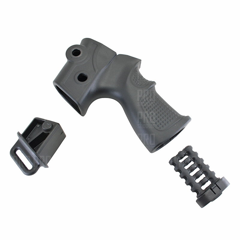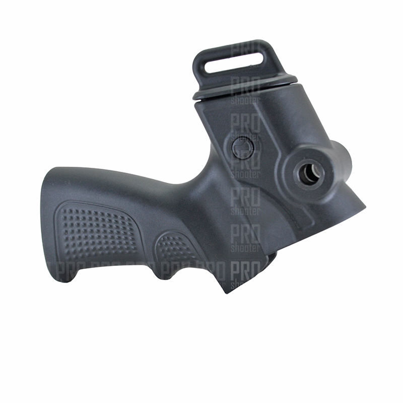 Пистолетная рукоятка на МР-135 - представляет собой комплект из анатомической рукояти и вкладыша с петлей для крепления ремня или карабина. Упрощает процесс транспортировки оружия, препятствует попаданию грязи внутрь разъема под трубу приклада.