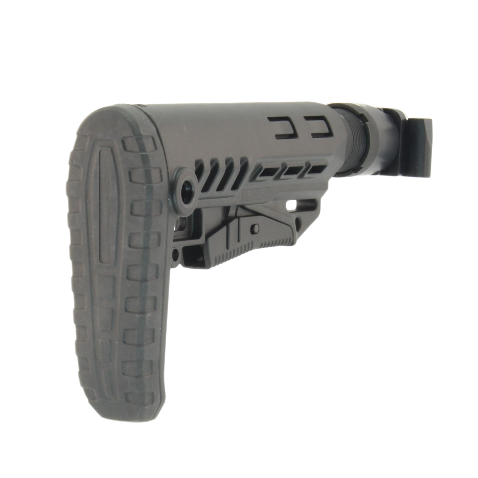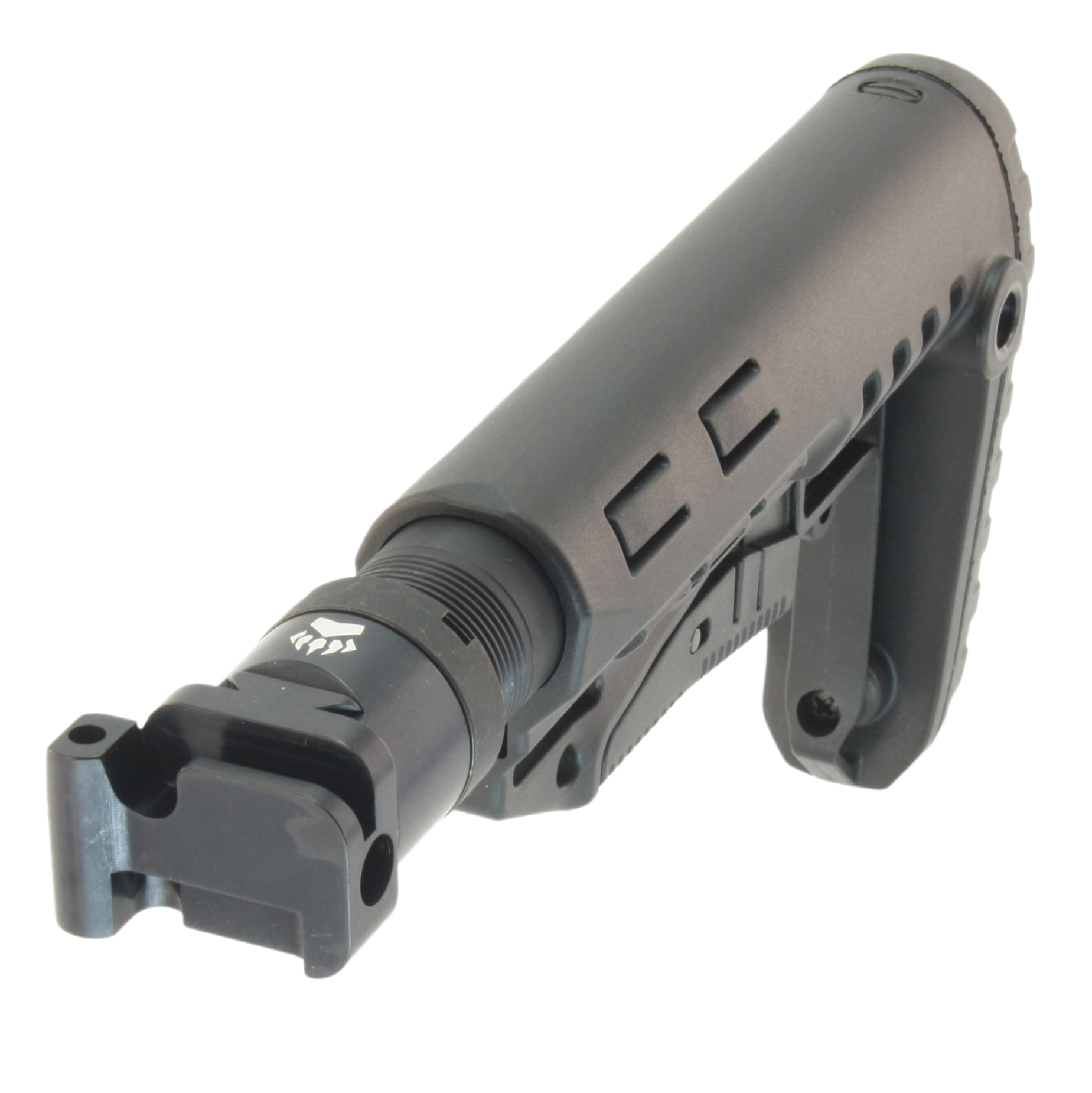- Труба приклада Mil-Spec - имеет 6 позиций, за счет которых длина приклада может варьироваться. Данная система поможет владельцу настроить изделие под себя, исходя из физиологических особенностей, личных предпочтений, окружающей обстановки, одежды и снаряжения;