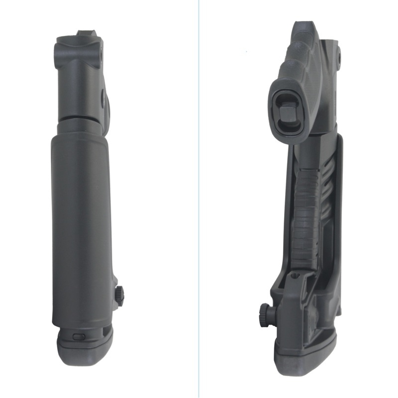 - снабжен двухступенчатой педалью фиксации. Первое положение педали – изменение непосредственно длины приклада, второе – монтаж изделия на трубку;