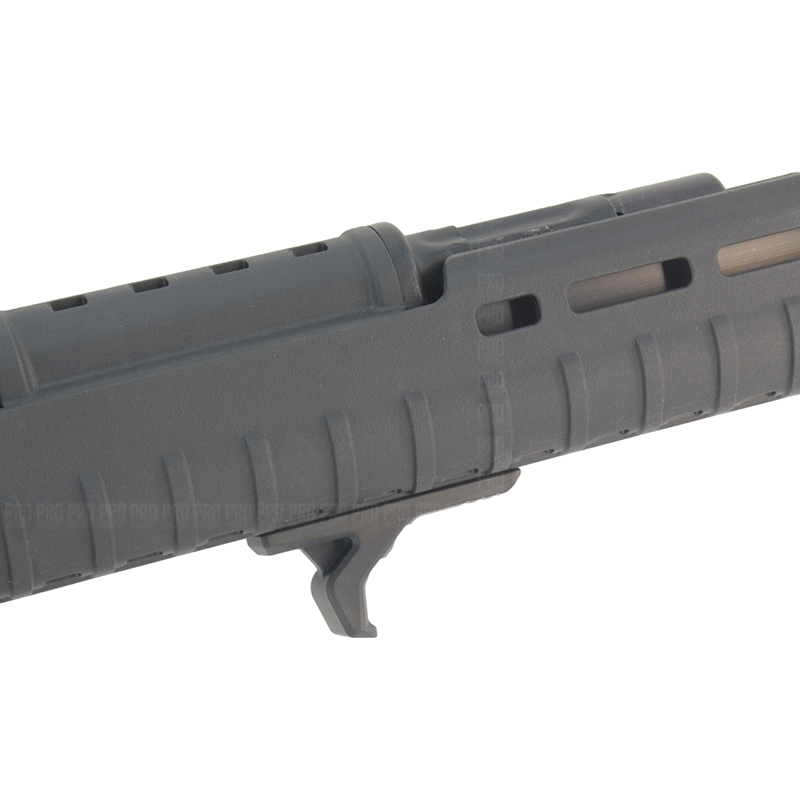 - Устанавливается напрямую и не требует переходников, благодаря чему располагается максимально близко к цевью, образуя удобный хват с высоким уровнем контроля оружия;