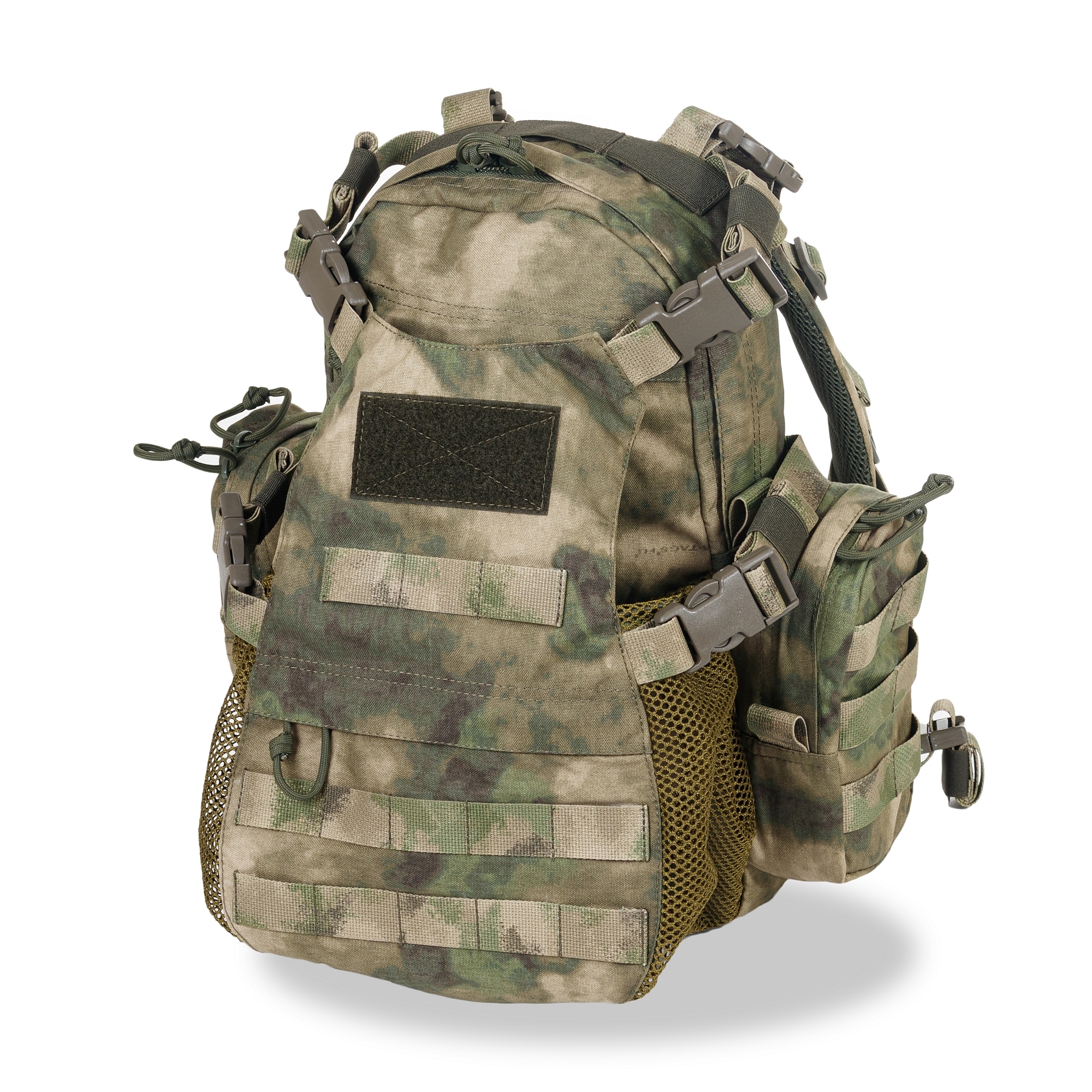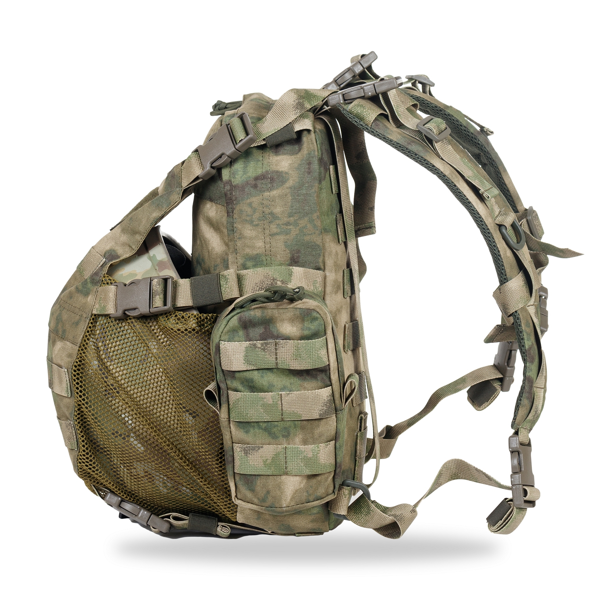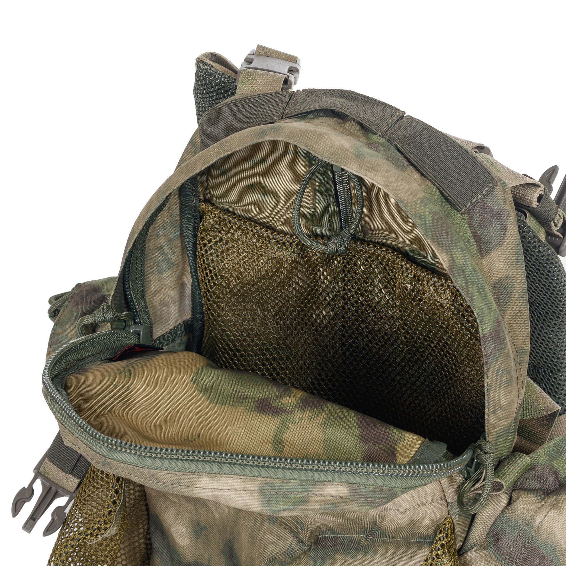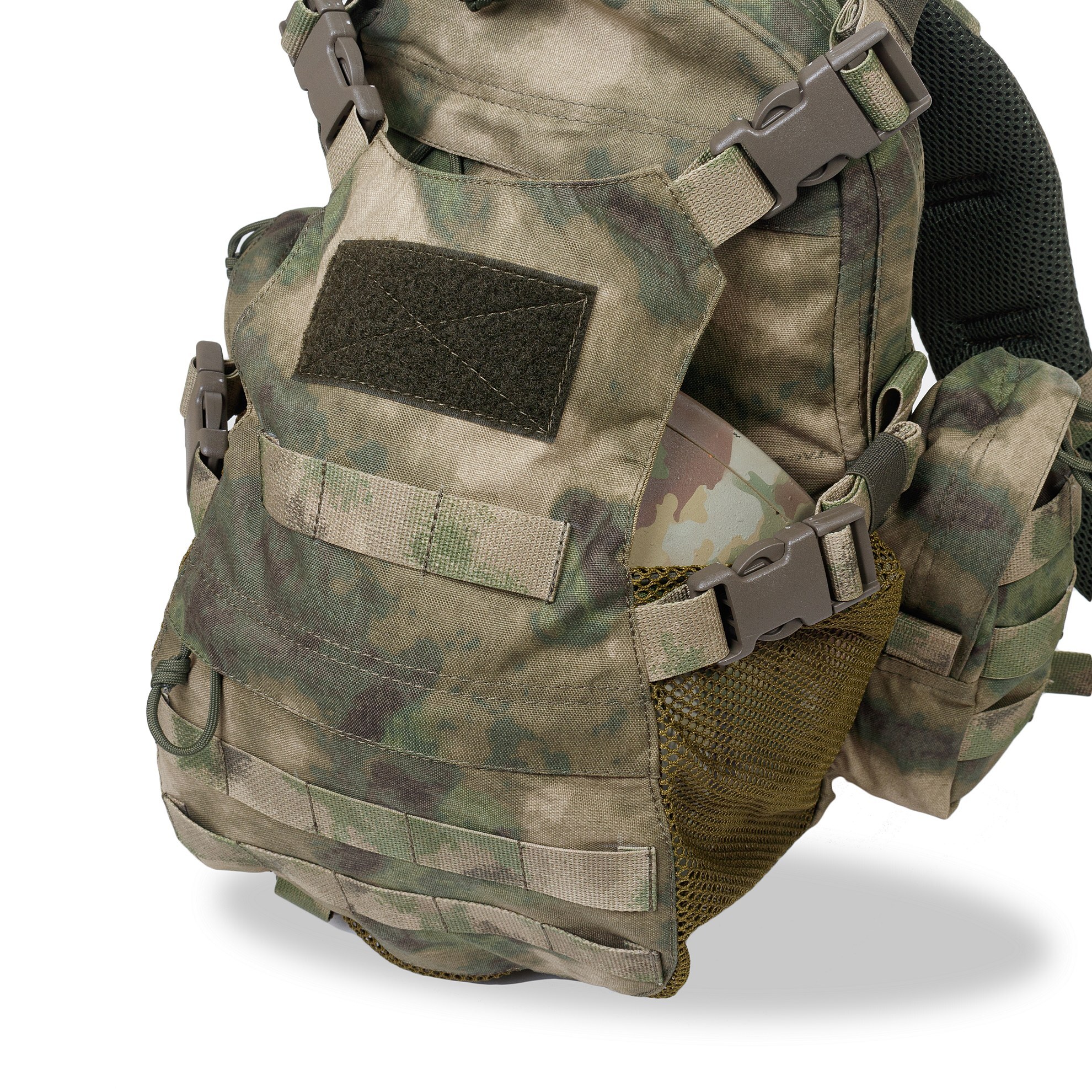 - На внешней стороне нашит открытый вентилируемый карман, предназначенный для транспортировки тактического шлема и других аксессуаров. За надежную фиксацию содержимого отвечают регулируемые ремешки с застежками фастекс;