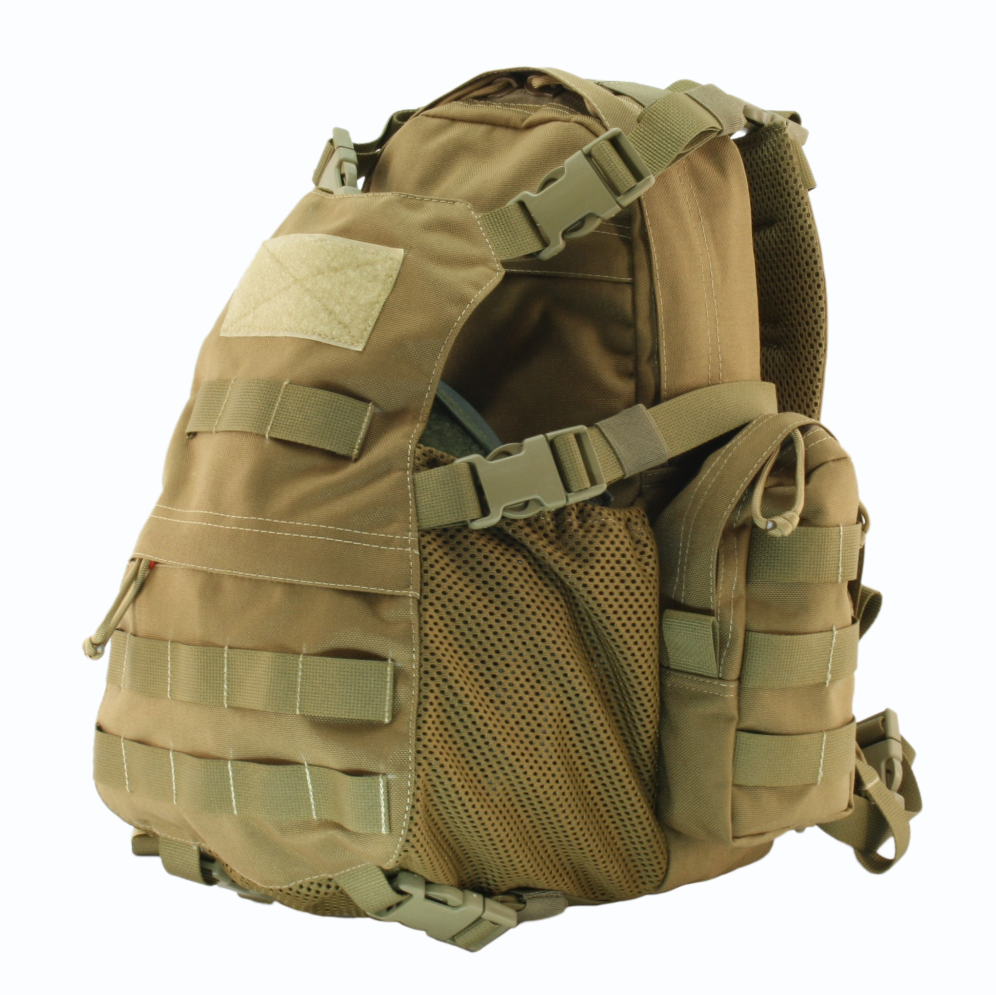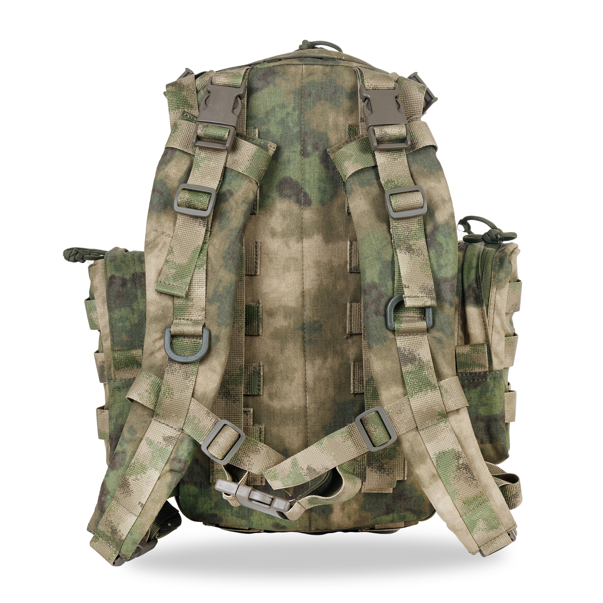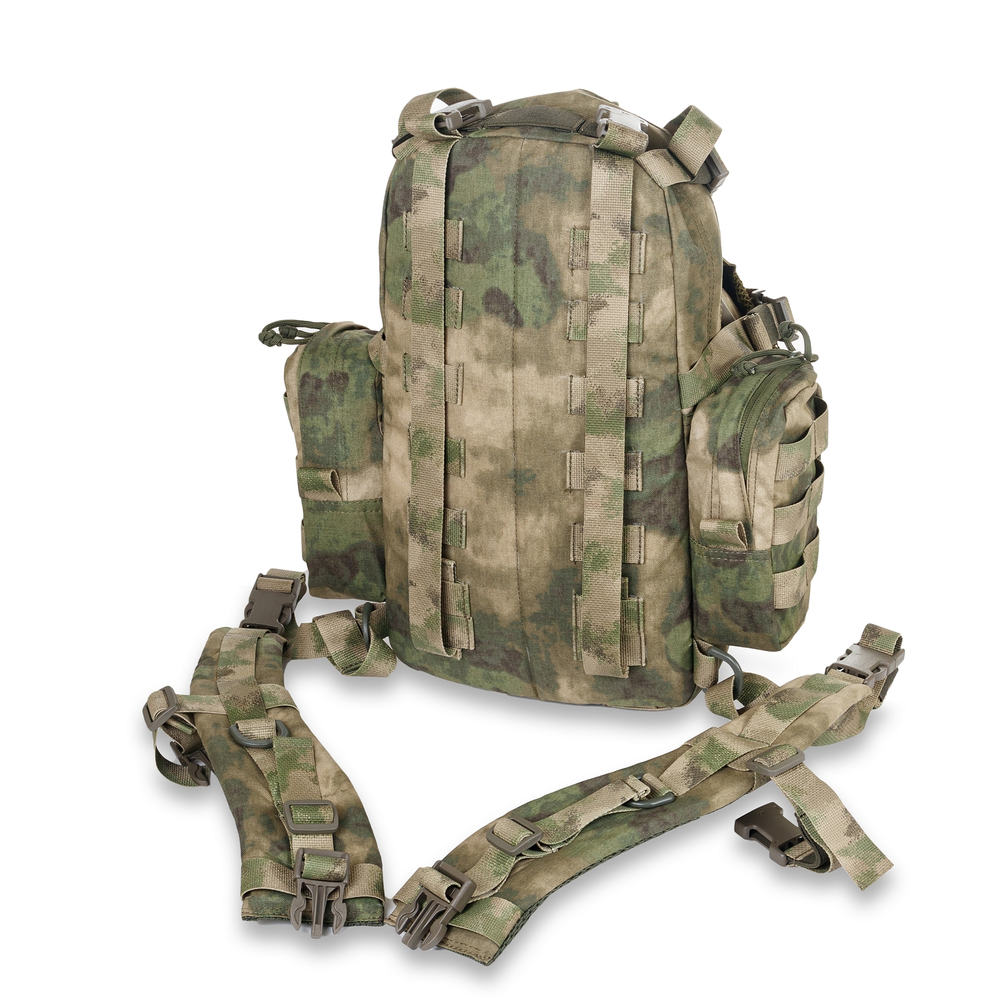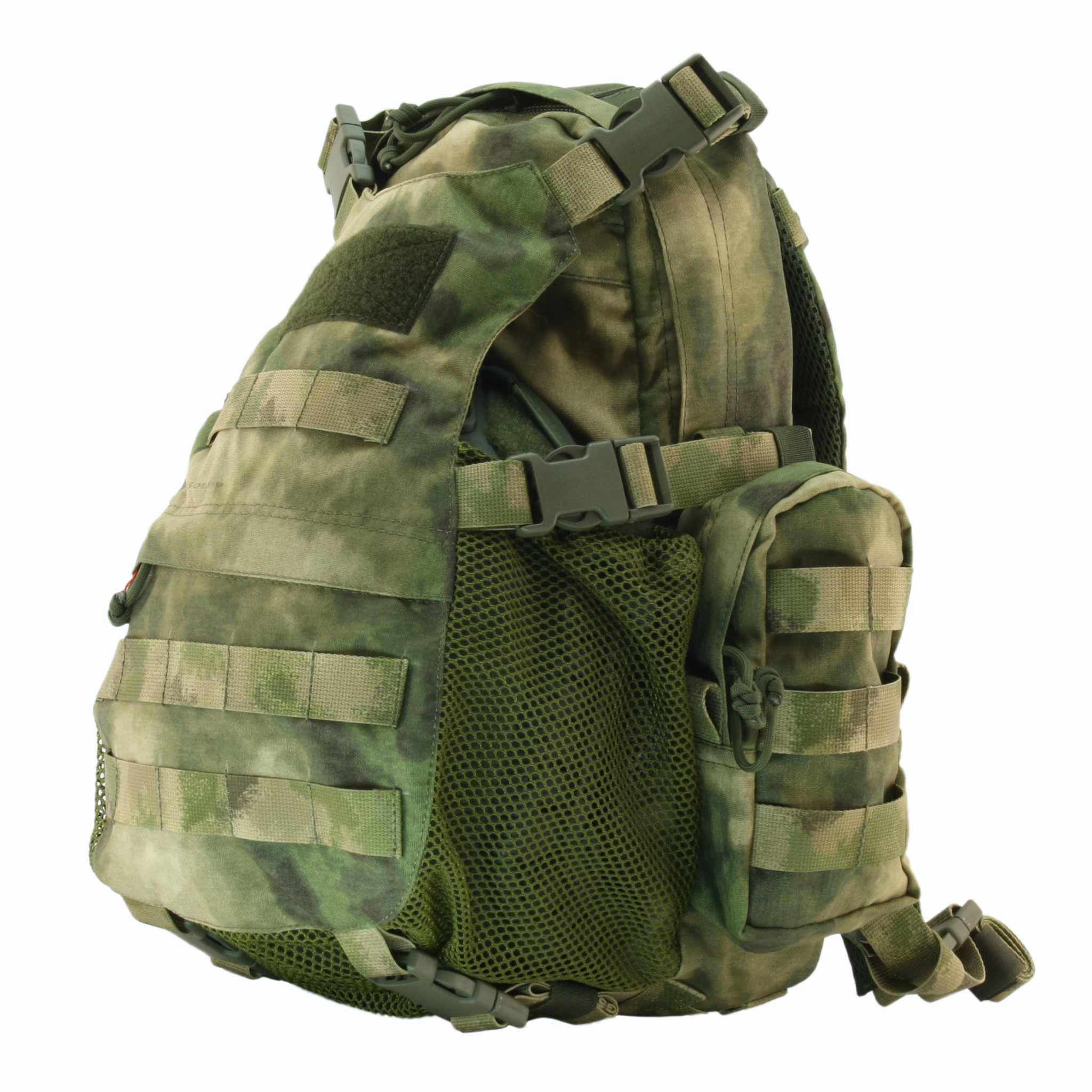 - На внешней стороне нашит открытый вентилируемый карман, предназначенный для транспортировки тактического шлема и других аксессуаров. За надежную фиксацию содержимого отвечают регулируемые ремешки с застежками фастекс;