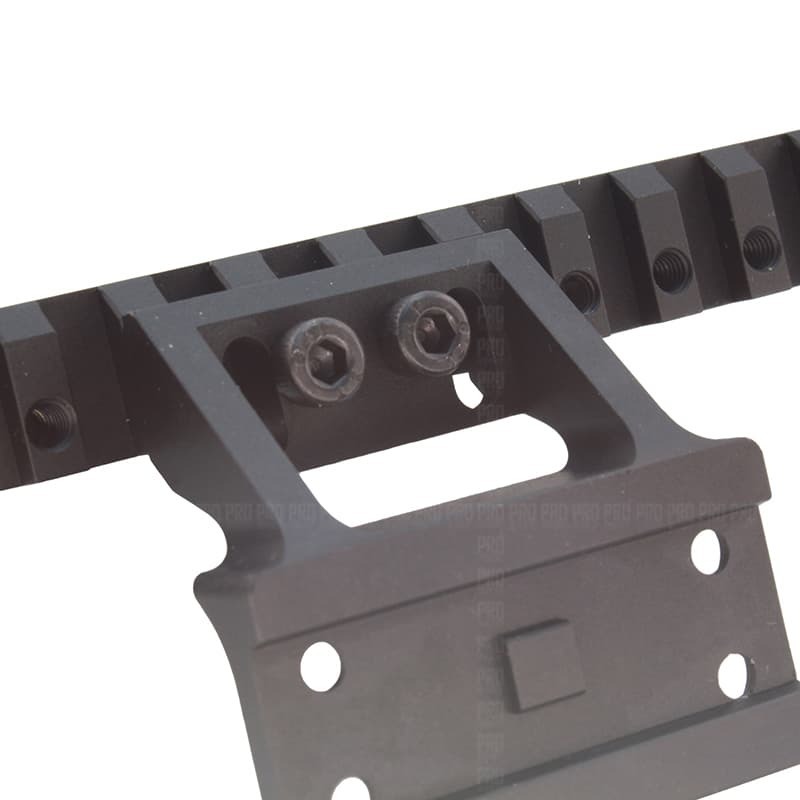 - Позволяет установить коллиматорный прицел с демонтированной посадочной базой Пикатинни, сформировав низкопрофильную конструкцию с максимальным приближением прицельного устройства к оси ствола;
