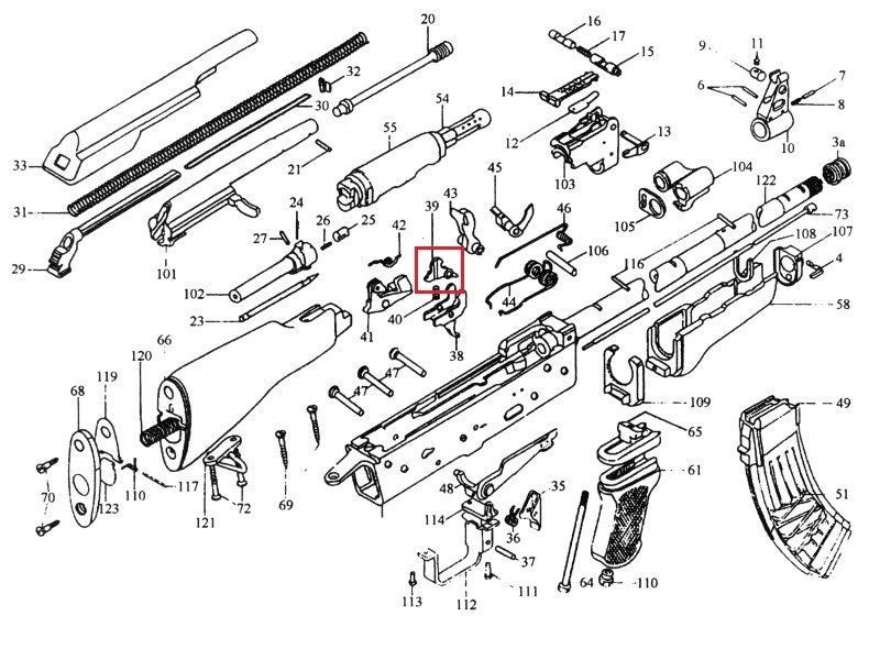 Шептало АКМ - стандартная деталь ЗИП АК, входит в блок ударно-спускового механизма.