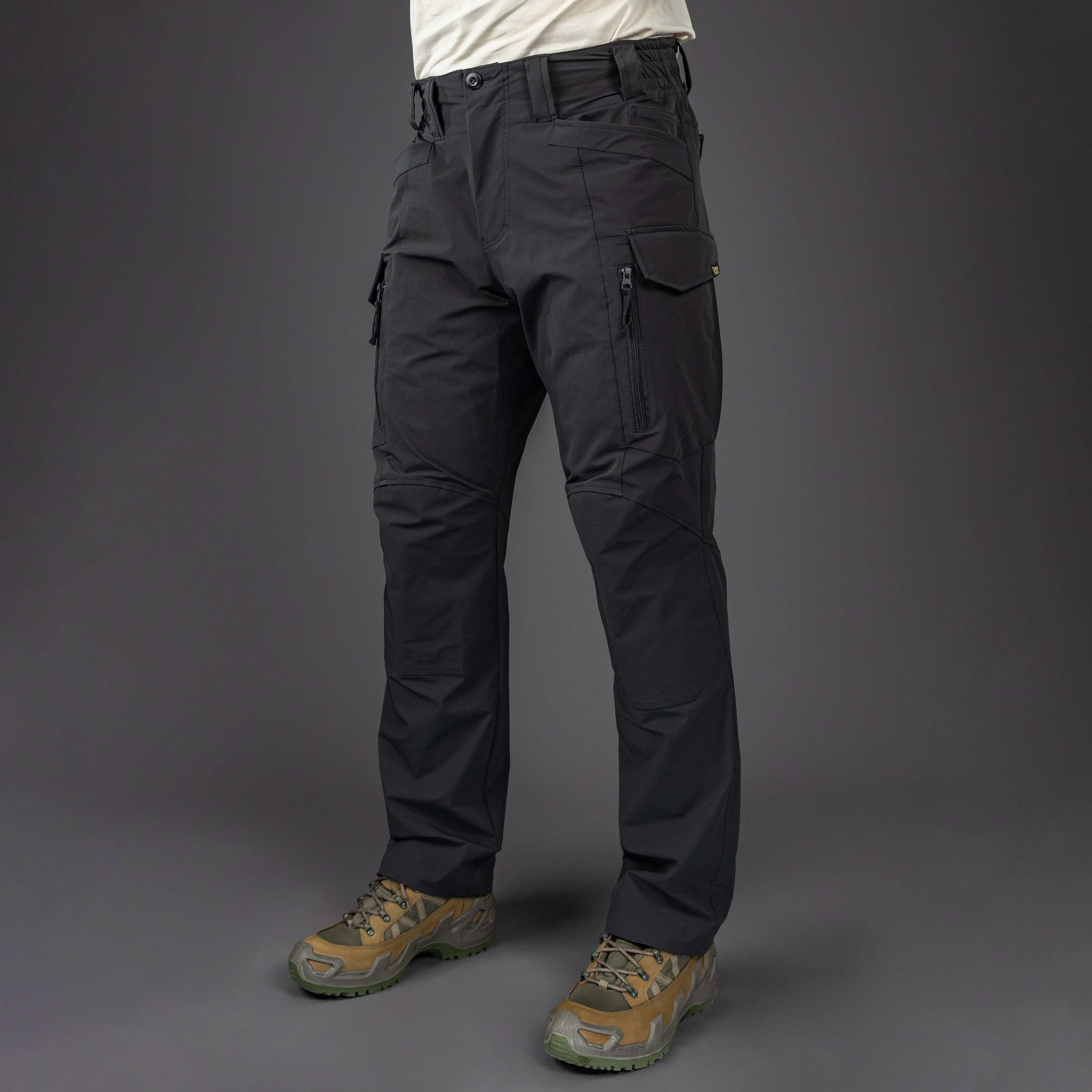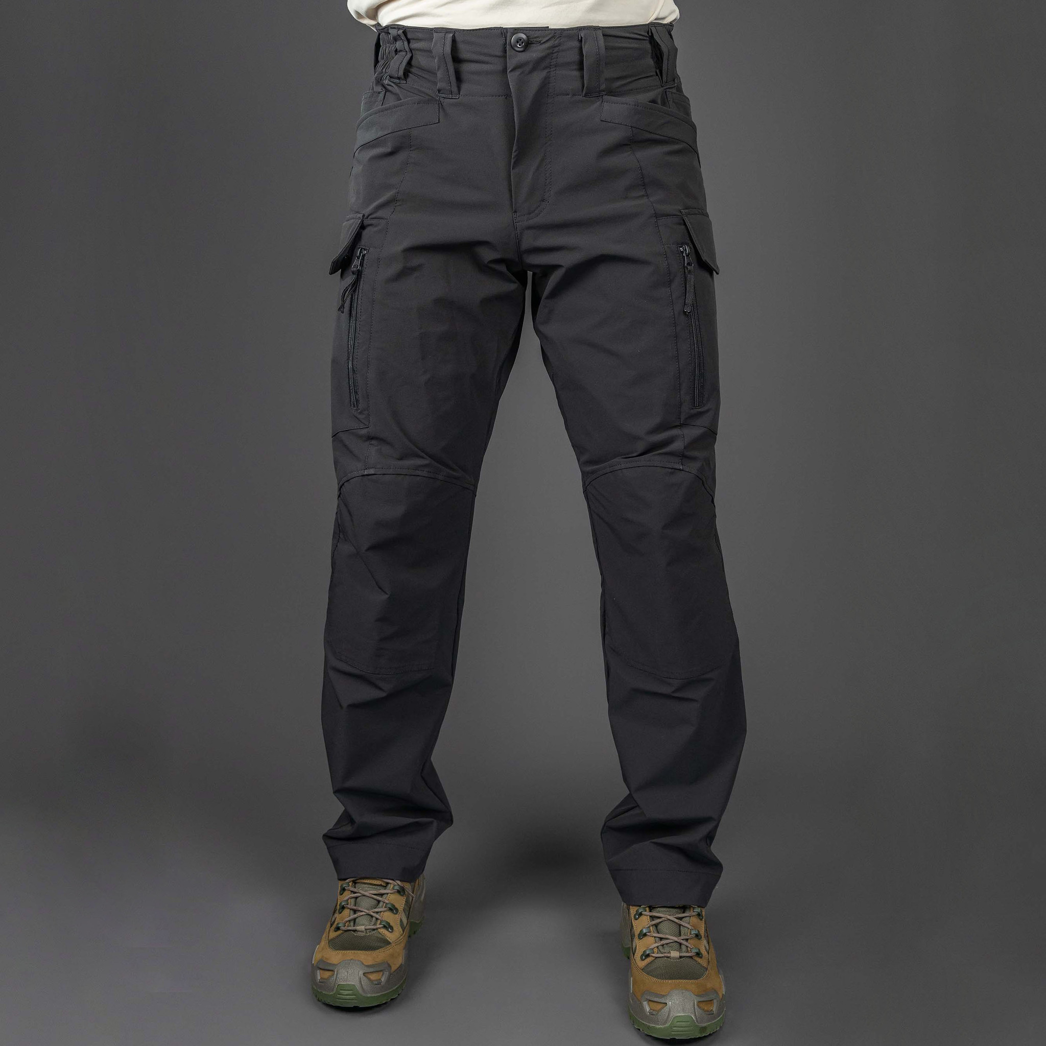 - “Грузовые” карманы эргономичного дизайна по бокам брюк с возможностью расширения, закрываются клапанами на “велкро”. Имеют дополнительный вход на вертикальных молниях.;