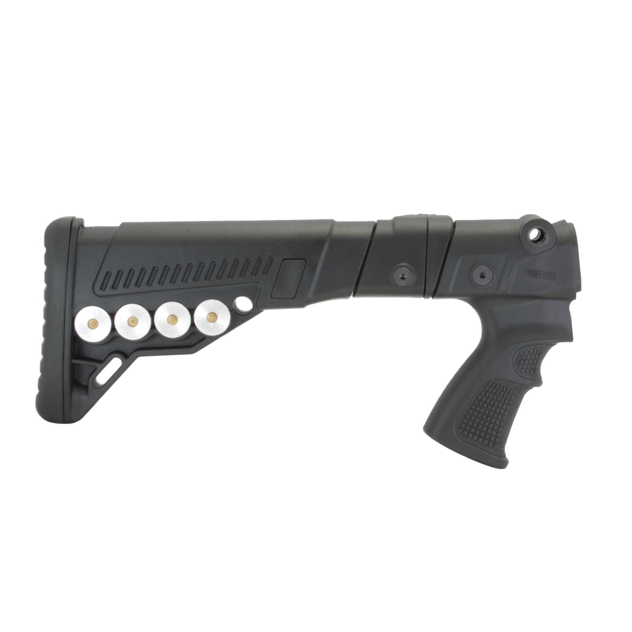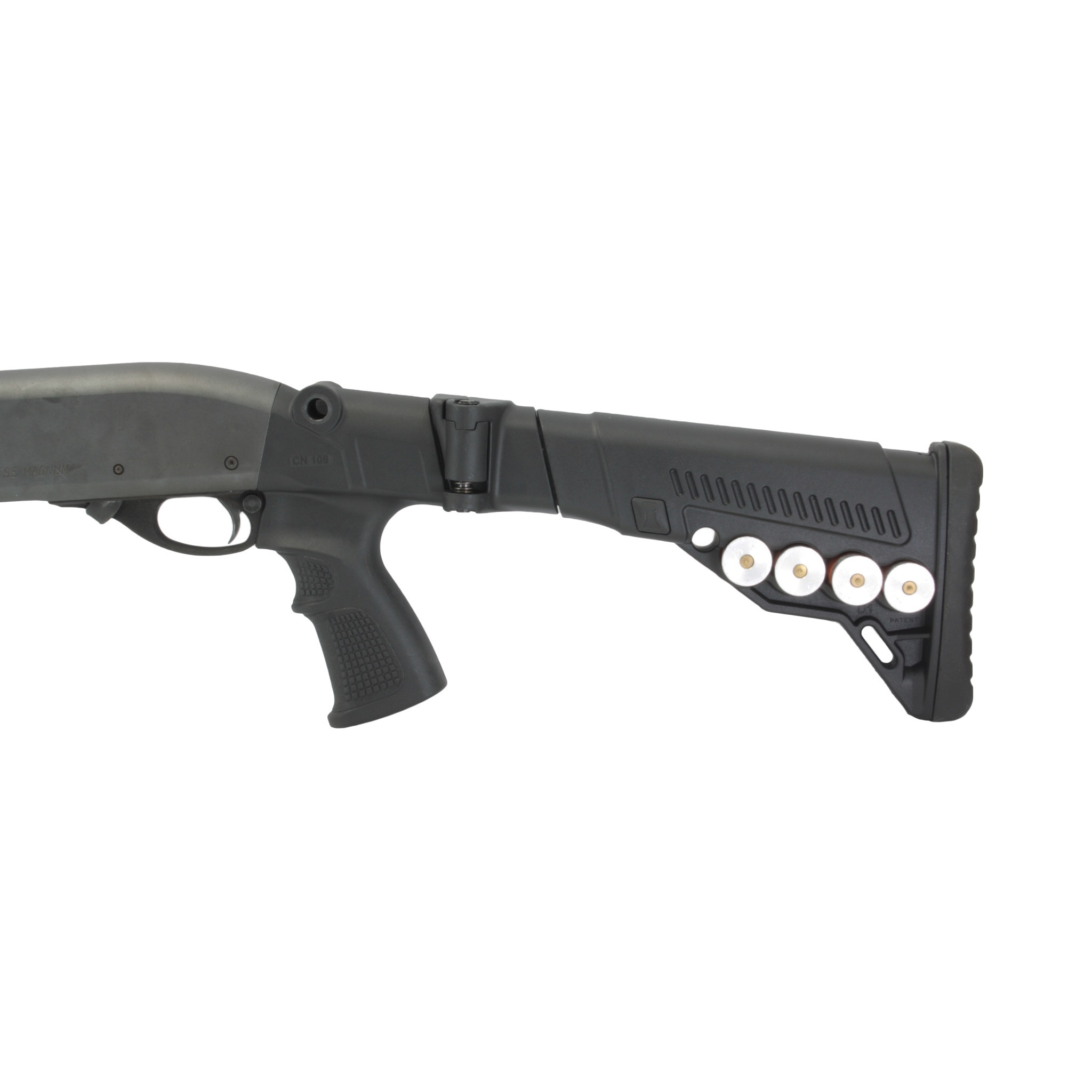 Складной приклад на Ремингтон – комплект изделий для замены штатного приклада на Remington 870 и 750. Позволяет осуществлять складывание приклада, настройку длины. Оборудован встроенным патронташем на 4 патрона.