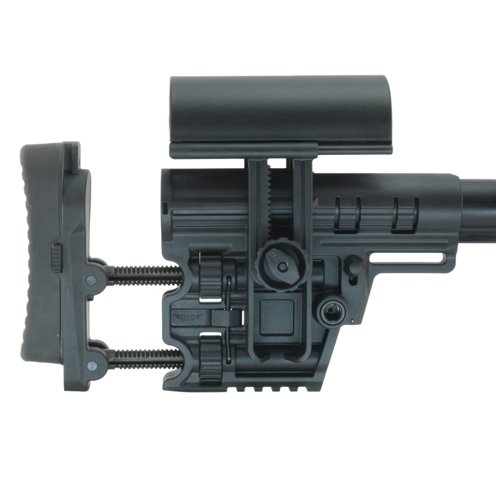 - Снайперский приклад DLG Tactical – эргономичная база приклада, разработанная специально для снайперских винтовок. Имеет широкий диапазон настроек под любые внешние условия. Производится из армированного стекловолокном полимера, благодаря чему имеет высоких запас прочности и не чувствителен к воздействию температур и смене погодных условий;