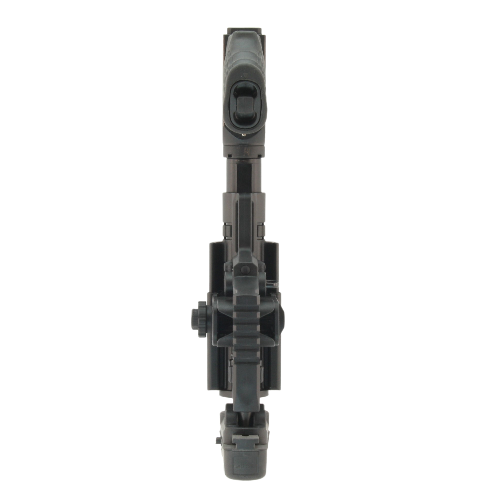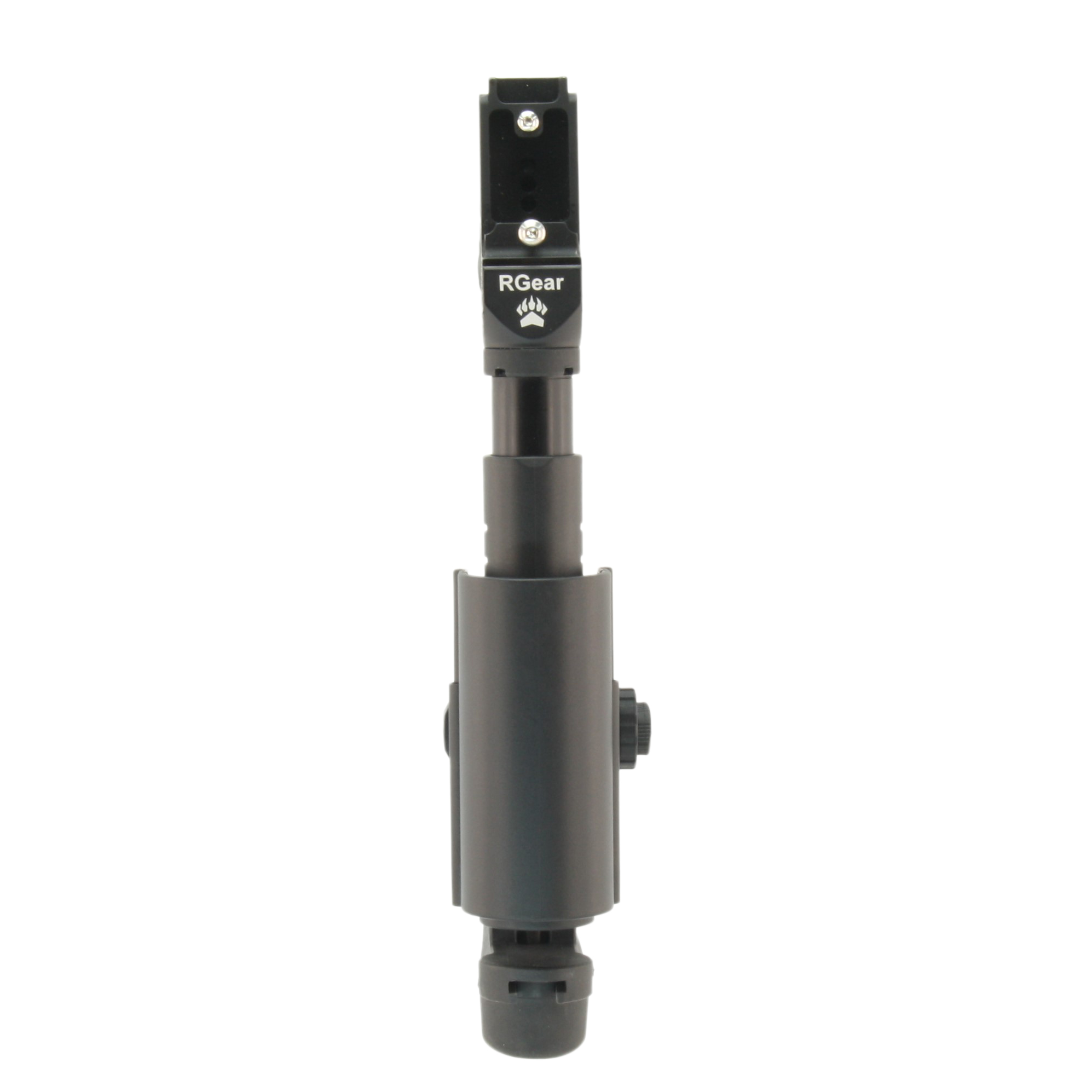 - Для установки базы используется кнопочный механизм, полное оттягивание которого извлекает пин из корпуса и позволяет надеть снайперский приклад на выбранную трубку. Регулировка длины производится аналогичным образом;