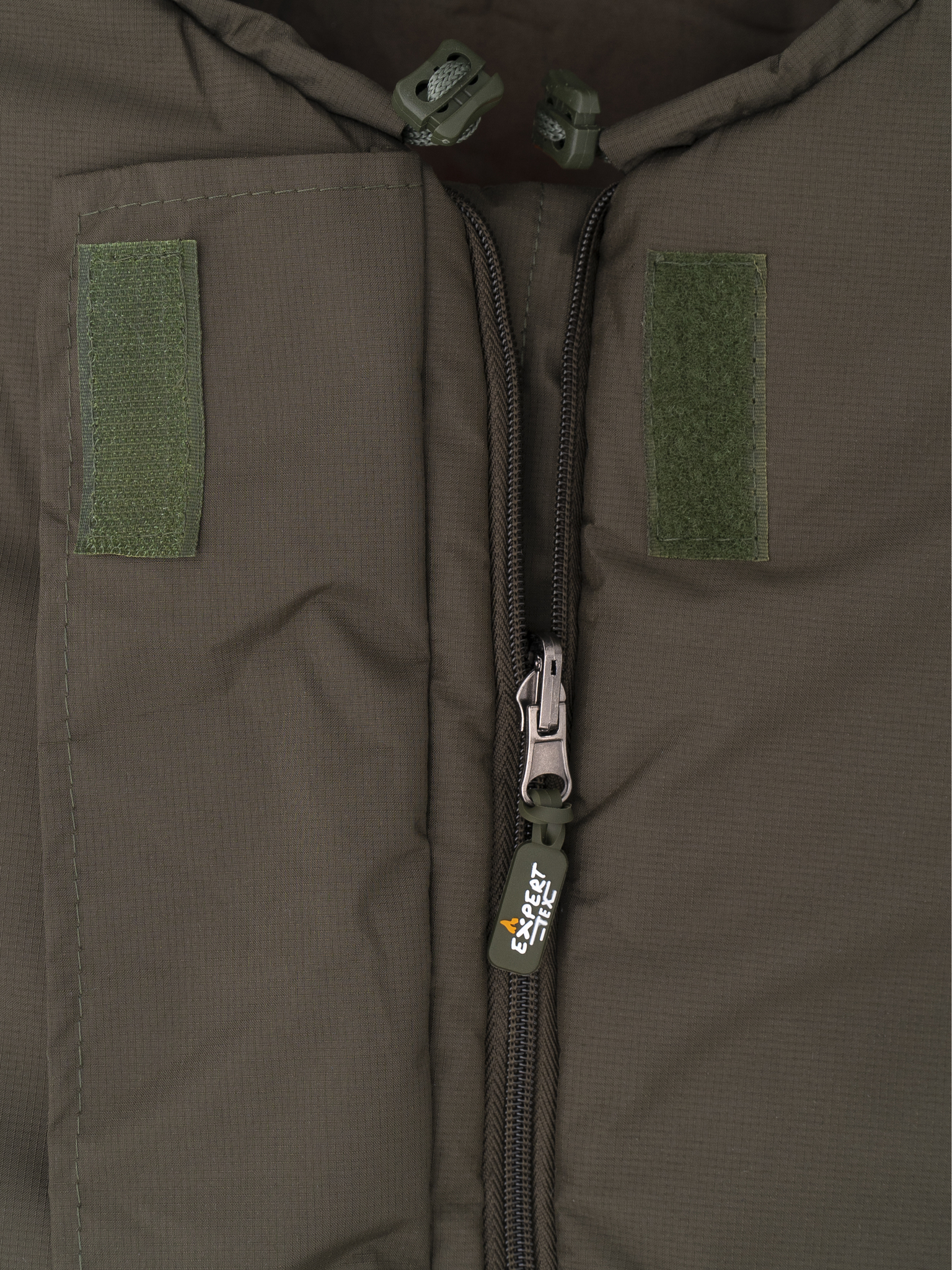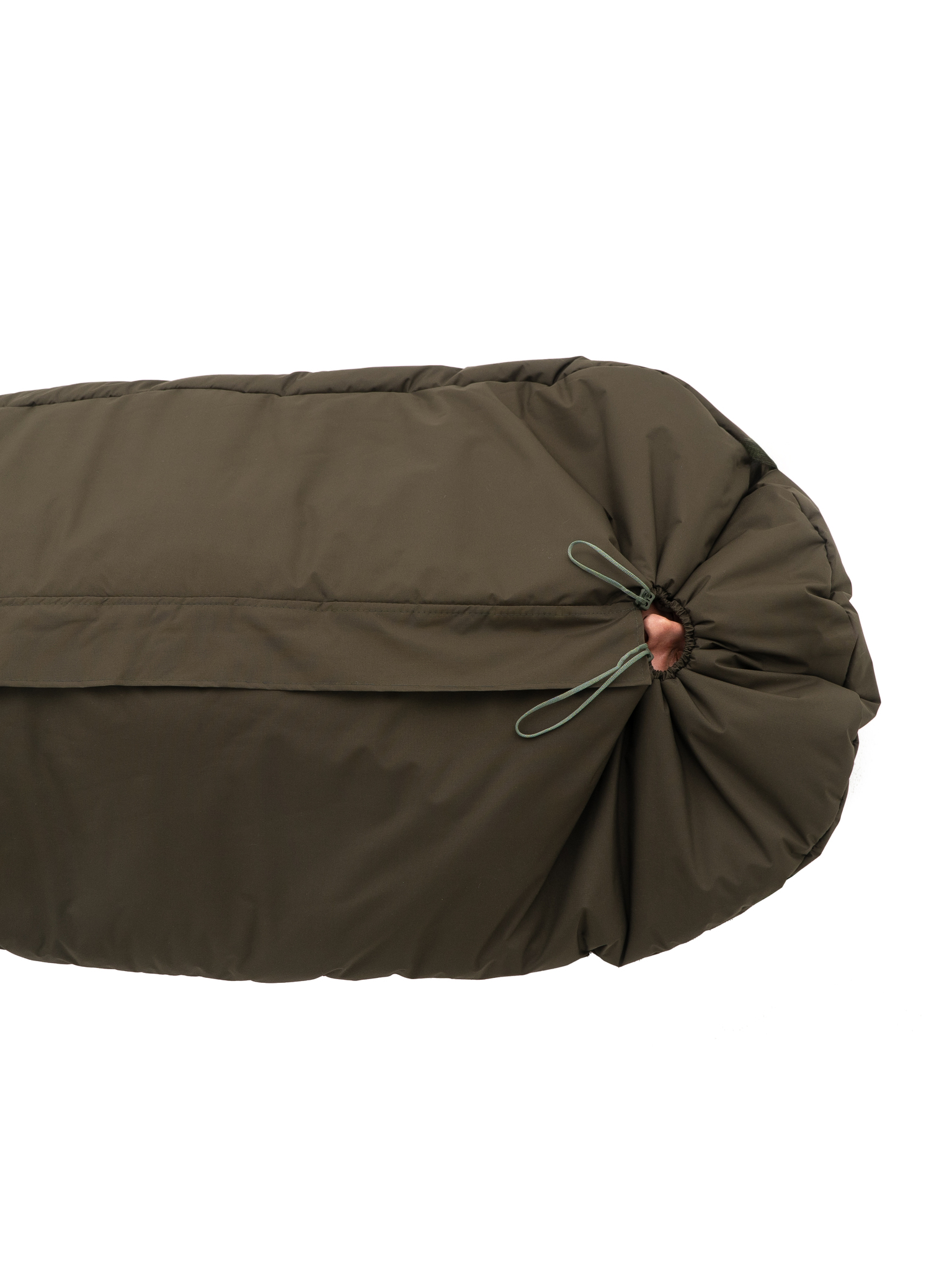 - Подголовник и воротниковая зона оборудованы стягивающими шнурами с кулиской для защиты от попадания холодного воздуха и влаги внутрь спальника;