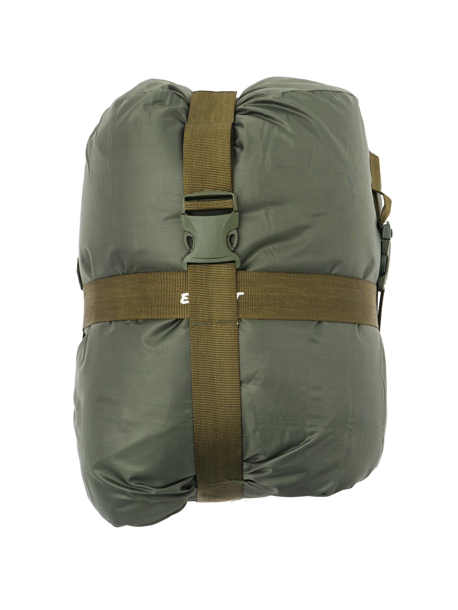 - Также к чехлу пришита система компрессионных ремней, с помощью которой можно уменьшить объем мешка и занимаемое им место в переносимом снаряжении;