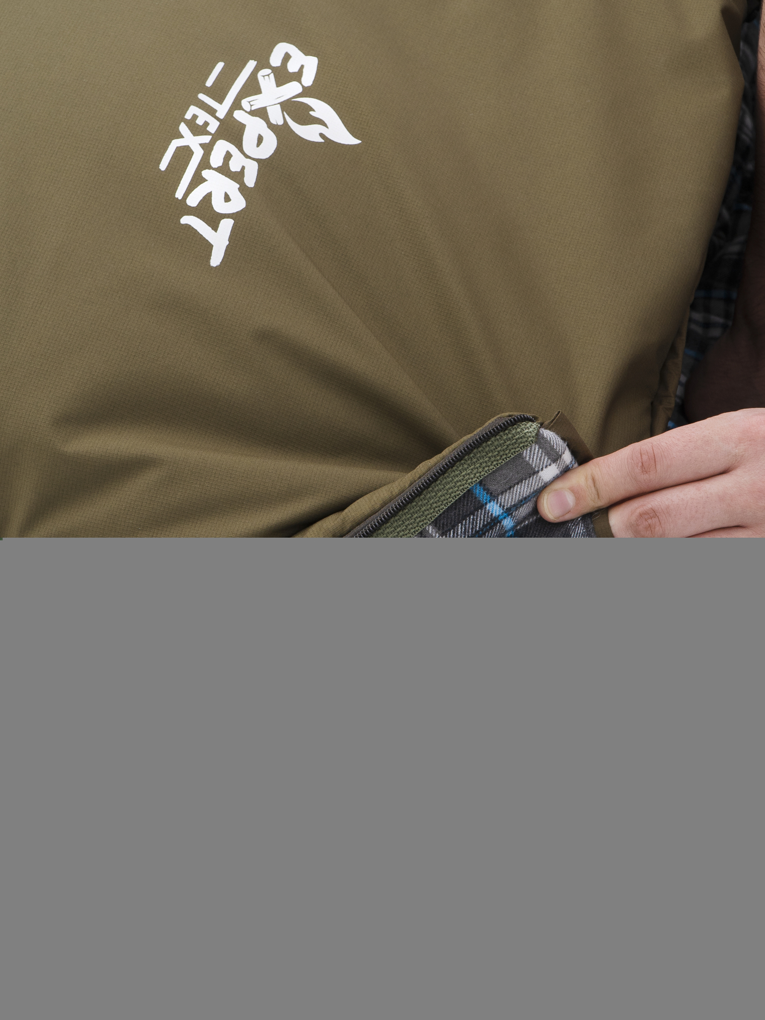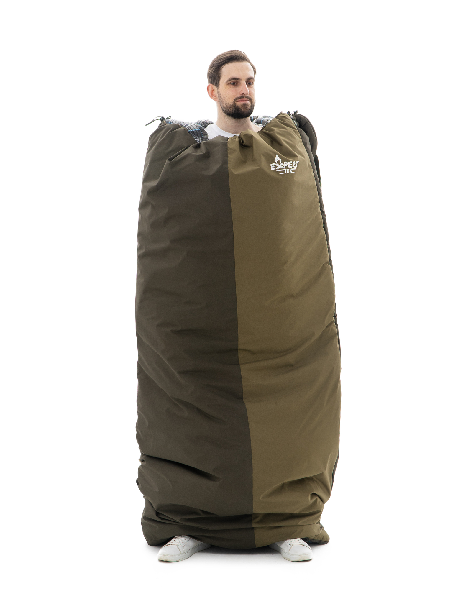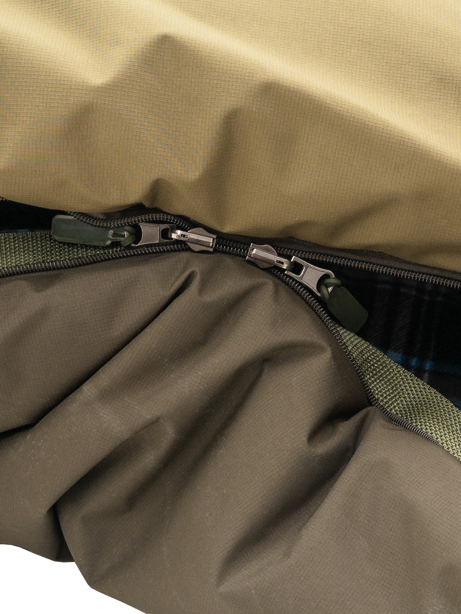 - Представляет собой большое одеяло, складывающееся пополам и закрывающееся на молнию. Молния в свою очередь с внутренней стороны защищена от продувания утепленной текстильной стропой;