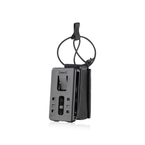 - Паучер для пистолетного магазина оснащен двумя вертикально расположенными ячейками MOLLE-minus для установки дополнительного снаряжения.