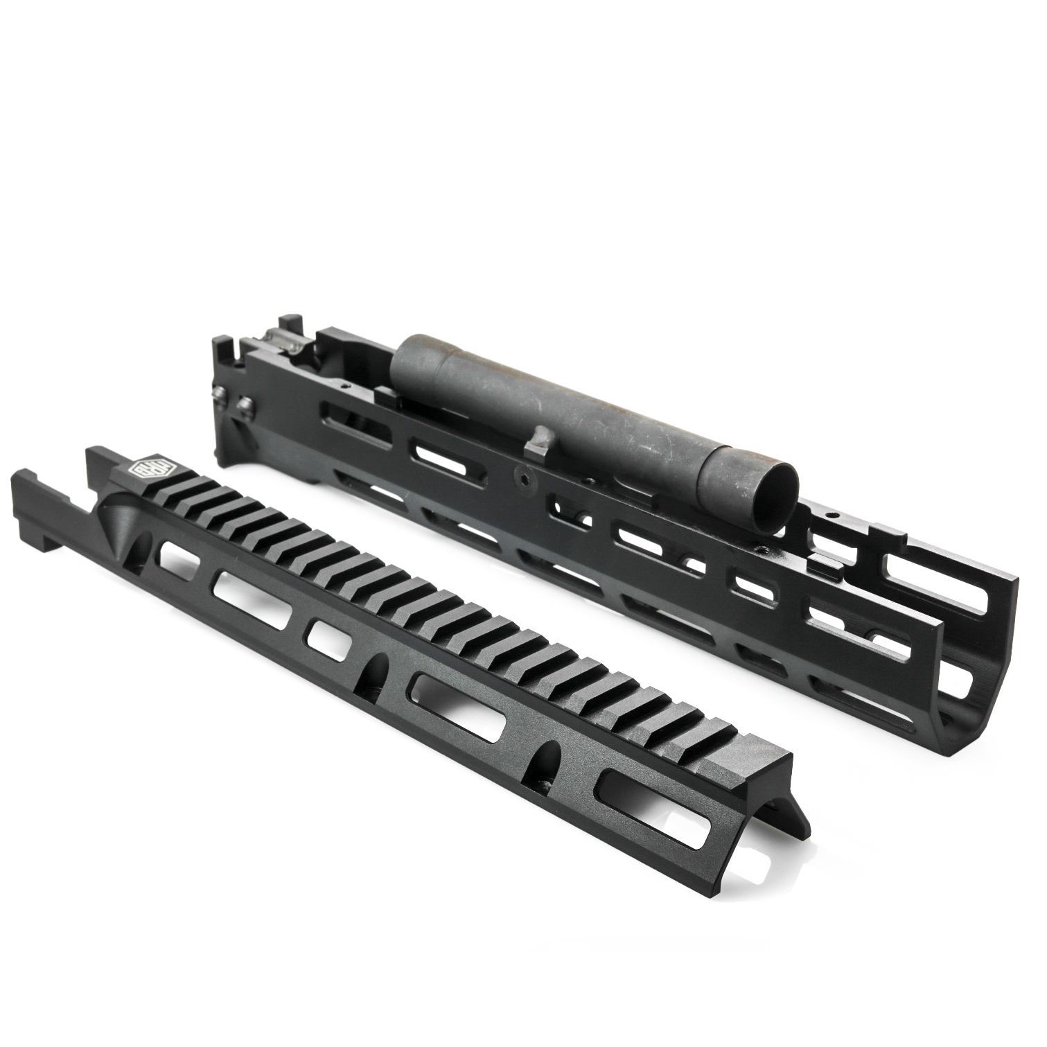 - Цевье и газтрубка соединены между собой шестигранными винтами, что образует цельную, монолитную конструкцию;