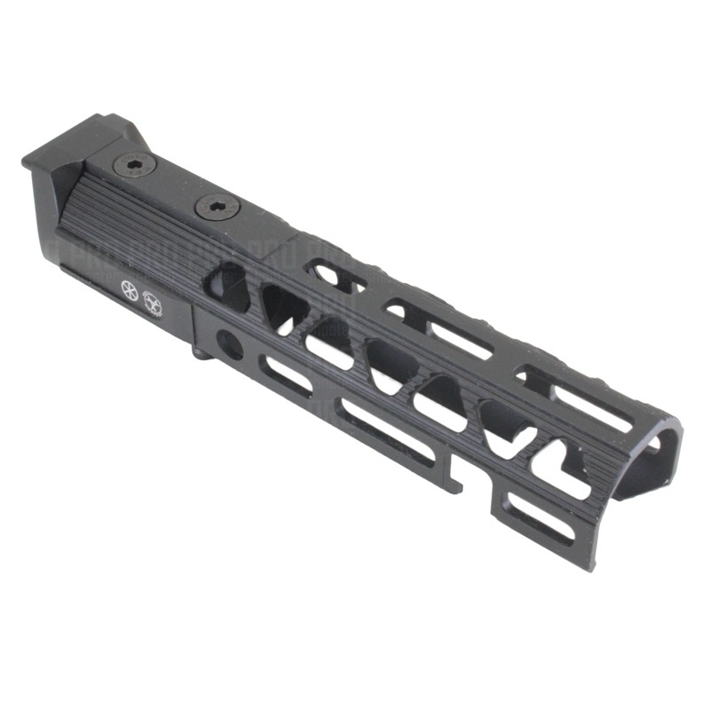 - Цевье на Сайгу 9 от Армакон оборудовано пазами M-LOK (9 шт.) для расположения на нем любого съемного оборудования (планки, рукоятки, фонари и т.д.);
